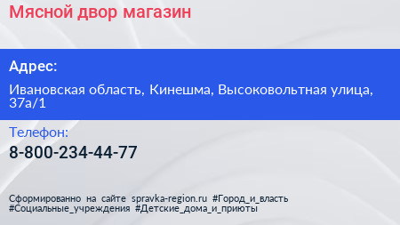 Мясной двор, магазин по адресу Ивановская область, Кинешма, Высоковольтная улица, 37а/1 в дальнейшем Организация, размещена в следующих категориях: