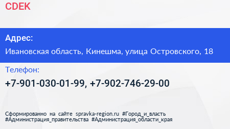 CDEK по адресу Ивановская область, Кинешма, улица Островского, 18 в дальнейшем Организация, размещена в следующих категориях: