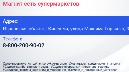 Магнит, сеть супермаркетов по адресу Ивановская область, Кинешма, улица Максима Горького, 3 в дальнейшем Организация, размещена в следующих категориях:
