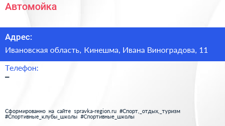Автомойка по адресу Ивановская область, Кинешма, Ивана Виноградова, 11 в дальнейшем Организация, размещена в следующих категориях:
