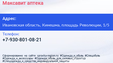 Максавит, аптека по адресу Ивановская область, Кинешма, площадь Революции, 1/5 в дальнейшем Организация, размещена в следующих категориях: