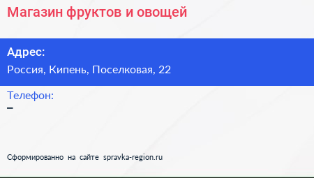 Магазин фруктов и овощей по адресу Екатерининский торговый центр, 22, Поселковая улица, Жабино, Гатчинский муниципальный округ, Ленинградская область, Северо-Западный федеральный округ, 188362, Россия в дальнейшем Организация, размещена в следующих категориях: