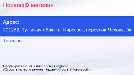 НоскофФ, магазин по адресу 301262, Тульская область, Киреевск, переулок Чехова, 3а в дальнейшем Организация, размещена в следующих категориях: