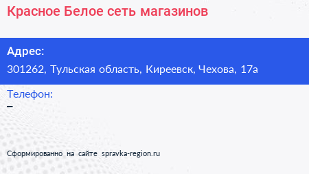 Красное & Белое, сеть магазинов по адресу 301262, Тульская область, Киреевск, Чехова, 17а в дальнейшем Организация, размещена в следующих категориях:
