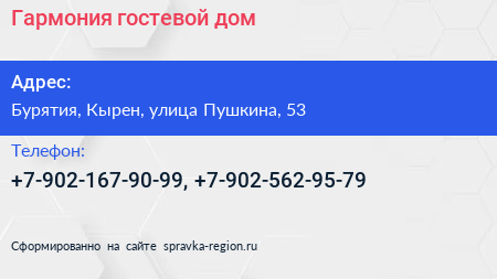 Гармония, гостевой дом по адресу Бурятия, Кырен, улица Пушкина, 53 в дальнейшем Организация, размещена в следующих категориях:
