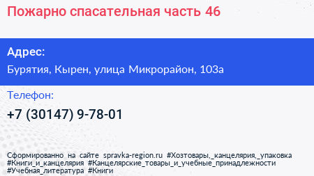 Пожарно-спасательная часть №46 по адресу Бурятия, Кырен, улица Микрорайон, 103а в дальнейшем Организация, размещена в следующих категориях: