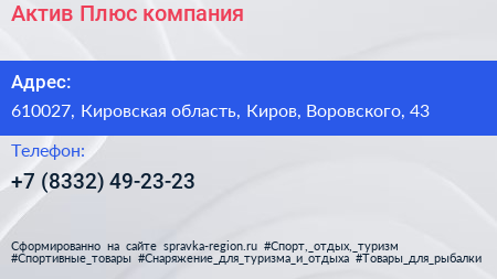 Актив-Плюс, компания по адресу 610027, Кировская область, Киров, Воровского, 43 в дальнейшем Организация, размещена в следующих категориях: