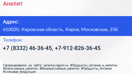 Аналит по адресу 610020, Кировская область, Киров, Московская, 25Б в дальнейшем Организация, размещена в следующих категориях: