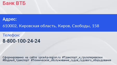 Банк ВТБ по адресу 610002, Кировская область, Киров, Свободы, 158 в дальнейшем Организация, размещена в следующих категориях: