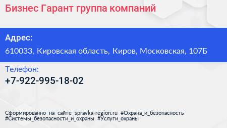Бизнес-Гарант, группа компаний по адресу 610033, Кировская область, Киров, Московская, 107Б в дальнейшем Организация, размещена в следующих категориях: