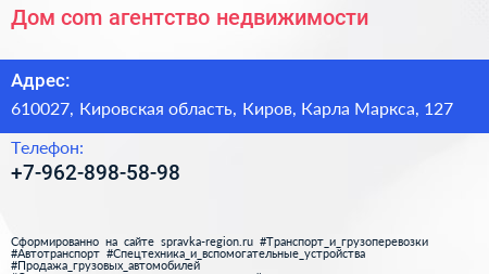 Дом.com, агентство недвижимости по адресу 610027, Кировская область, Киров, Карла Маркса, 127 в дальнейшем Организация, размещена в следующих категориях: