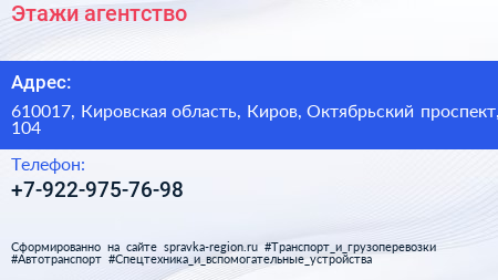 Этажи, агентство по адресу 610017, Кировская область, Киров, Октябрьский проспект, 104 в дальнейшем Организация, размещена в следующих категориях: