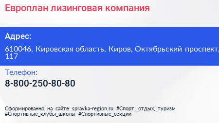 Европлан, лизинговая компания по адресу 610046, Кировская область, Киров, Октябрьский проспект, 117 в дальнейшем Организация, размещена в следующих категориях: