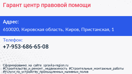 Гарант, центр правовой помощи по адресу 610020, Кировская область, Киров, Пристанская, 1 в дальнейшем Организация, размещена в следующих категориях: