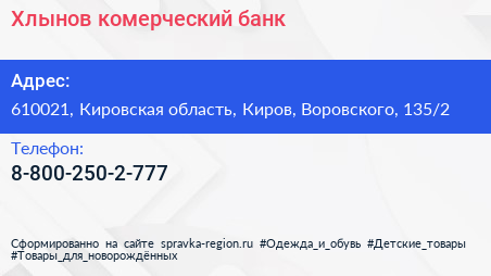 Хлынов, комерческий банк по адресу 610021, Кировская область, Киров, Воровского, 135/2 в дальнейшем Организация, размещена в следующих категориях: