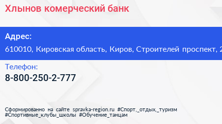 Хлынов, комерческий банк по адресу 610010, Кировская область, Киров, Строителей проспект, 2 в дальнейшем Организация, размещена в следующих категориях:
