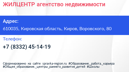 ЖИЛЦЕНТР, агентство недвижимости по адресу 610035, Кировская область, Киров, Воровского, 80 в дальнейшем Организация, размещена в следующих категориях: