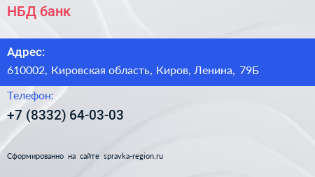НБД-банк по адресу 610002, Кировская область, Киров, Ленина, 79Б в дальнейшем Организация, размещена в следующих категориях: