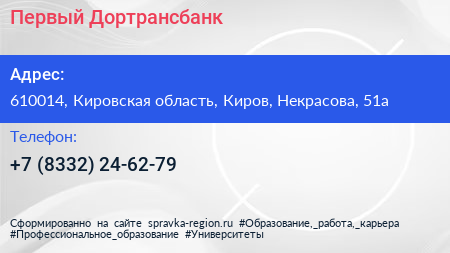 Первый Дортрансбанк по адресу 610014, Кировская область, Киров, Некрасова, 51а в дальнейшем Организация, размещена в следующих категориях: