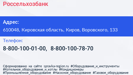 Россельхозбанк по адресу 610048, Кировская область, Киров, Воровского, 133 в дальнейшем Организация, размещена в следующих категориях: