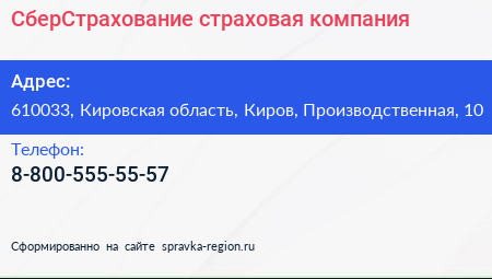 СберСтрахование, страховая компания по адресу 610033, Кировская область, Киров, Производственная, 10 в дальнейшем Организация, размещена в следующих категориях: