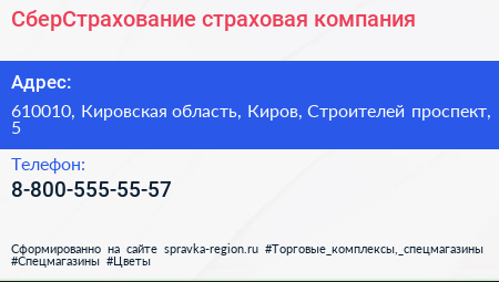 СберСтрахование, страховая компания по адресу 610010, Кировская область, Киров, Строителей проспект, 5 в дальнейшем Организация, размещена в следующих категориях: