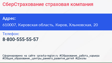 СберСтрахование, страховая компания по адресу 610007, Кировская область, Киров, Хлыновская, 20 в дальнейшем Организация, размещена в следующих категориях: