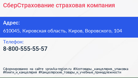 СберСтрахование, страховая компания по адресу 610045, Кировская область, Киров, Воровского, 104 в дальнейшем Организация, размещена в следующих категориях:
