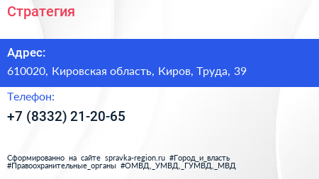 Стратегия по адресу 610020, Кировская область, Киров, Труда, 39 в дальнейшем Организация, размещена в следующих категориях: