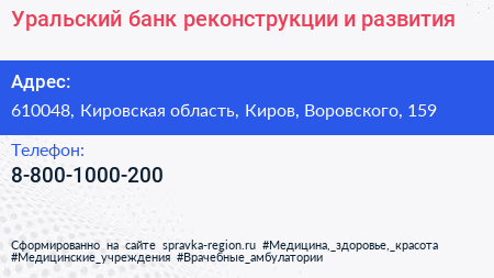 Уральский банк реконструкции и развития по адресу 610048, Кировская область, Киров, Воровского, 159 в дальнейшем Организация, размещена в следующих категориях: