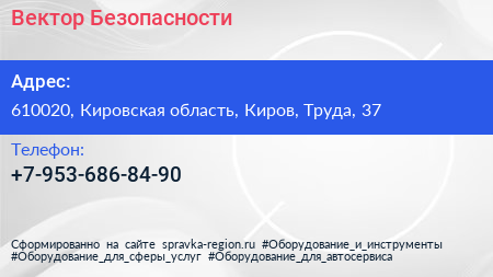 Вектор Безопасности по адресу 610020, Кировская область, Киров, Труда, 37 в дальнейшем Организация, размещена в следующих категориях: