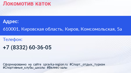 Локомотив, каток по адресу 610001, Кировская область, Киров, Комсомольская, 5а в дальнейшем Организация, размещена в следующих категориях: