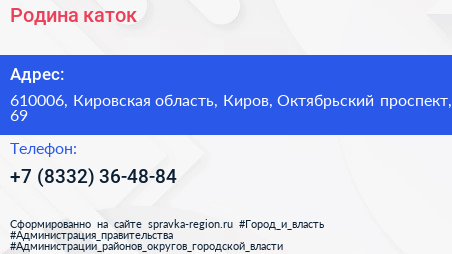 Родина, каток по адресу 610006, Кировская область, Киров, Октябрьский проспект, 69 в дальнейшем Организация, размещена в следующих категориях: