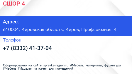 СШОР №4 по адресу 610004, Кировская область, Киров, Профсоюзная, 4 в дальнейшем Организация, размещена в следующих категориях: