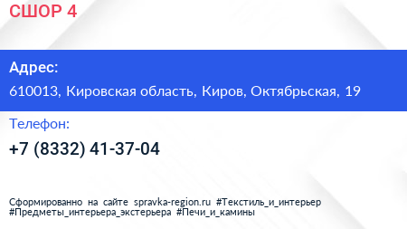 СШОР №4 по адресу 610013, Кировская область, Киров, Октябрьская, 19 в дальнейшем Организация, размещена в следующих категориях: