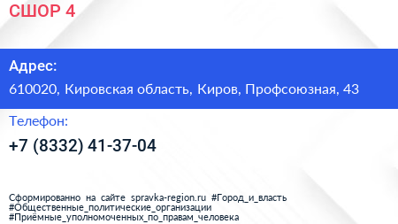 СШОР №4 по адресу 610020, Кировская область, Киров, Профсоюзная, 43 в дальнейшем Организация, размещена в следующих категориях: