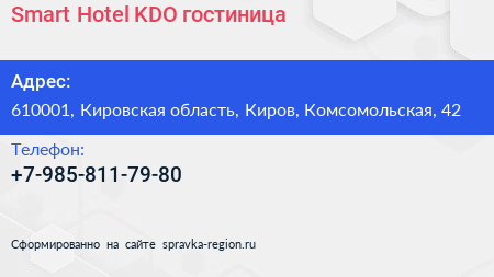 Smart Hotel KDO, гостиница по адресу 610001, Кировская область, Киров, Комсомольская, 42 в дальнейшем Организация, размещена в следующих категориях: