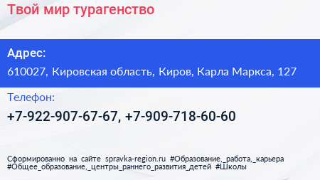 Твой мир, турагенство по адресу 610027, Кировская область, Киров, Карла Маркса, 127 в дальнейшем Организация, размещена в следующих категориях: