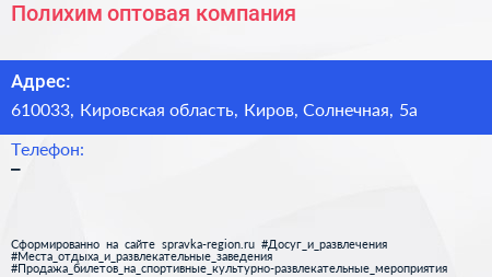 Полихим, оптовая компания по адресу 610033, Кировская область, Киров, Солнечная, 5а в дальнейшем Организация, размещена в следующих категориях: