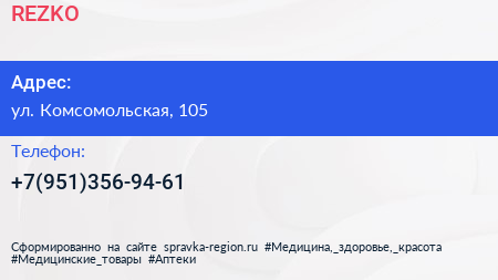 REZKO по адресу ул. Комсомольская, 105 в дальнейшем Организация, размещена в следующих категориях: