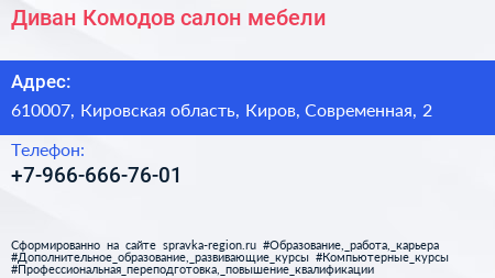 Диван Комодов, салон мебели по адресу 610007, Кировская область, Киров, Современная, 2 в дальнейшем Организация, размещена в следующих категориях: