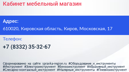 Кабинет, мебельный магазин по адресу 610020, Кировская область, Киров, Московская, 17 в дальнейшем Организация, размещена в следующих категориях:
