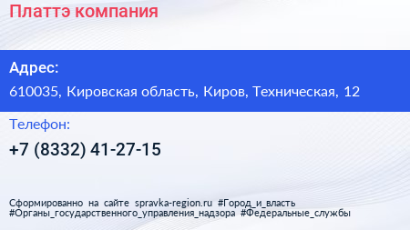Платтэ, компания по адресу 610035, Кировская область, Киров, Техническая, 12 в дальнейшем Организация, размещена в следующих категориях: