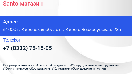 Santo, магазин по адресу 610007, Кировская область, Киров, Верхосунская, 23а в дальнейшем Организация, размещена в следующих категориях: