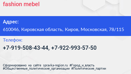 fashion mebel по адресу 610046, Кировская область, Киров, Московская, 78/115 в дальнейшем Организация, размещена в следующих категориях: