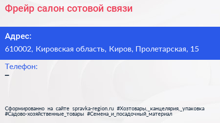 Фрейр, салон сотовой связи по адресу 610002, Кировская область, Киров, Пролетарская, 15 в дальнейшем Организация, размещена в следующих категориях: