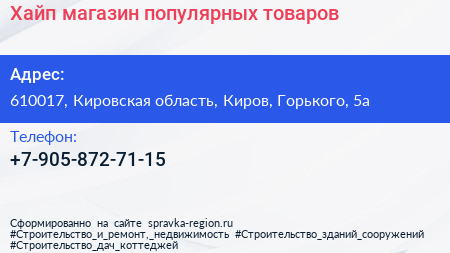 Хайп, магазин популярных товаров по адресу 610017, Кировская область, Киров, Горького, 5а в дальнейшем Организация, размещена в следующих категориях: