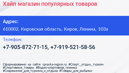 Хайп, магазин популярных товаров по адресу 610002, Кировская область, Киров, Ленина, 103а в дальнейшем Организация, размещена в следующих категориях: