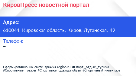 КировПресс, новостной портал по адресу 610044, Кировская область, Киров, Луганская, 49 в дальнейшем Организация, размещена в следующих категориях: