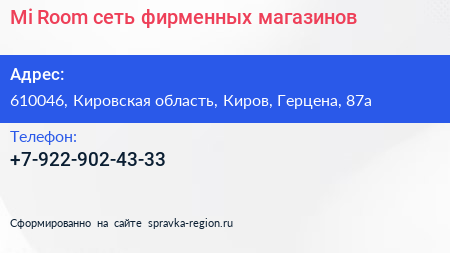 Mi-Room, сеть фирменных магазинов по адресу 610046, Кировская область, Киров, Герцена, 87а в дальнейшем Организация, размещена в следующих категориях: